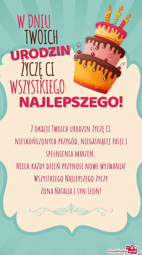 W tym wyjątkowym dniu, gdy świętujesz pół wieku życia życzymy Ci, STU LAT pełnych wyśmienitego zdrowia, miłości, szczęścia i spełnienia w życiu osobistym!