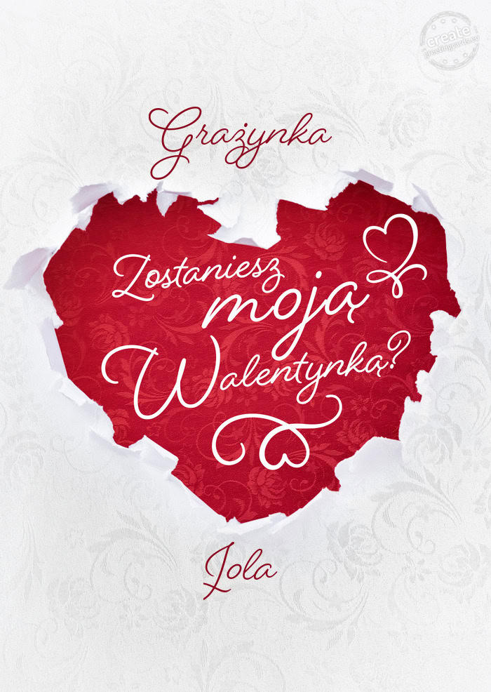 Dla Jerzego Zostaniesz moją walentynką? od Walentynki