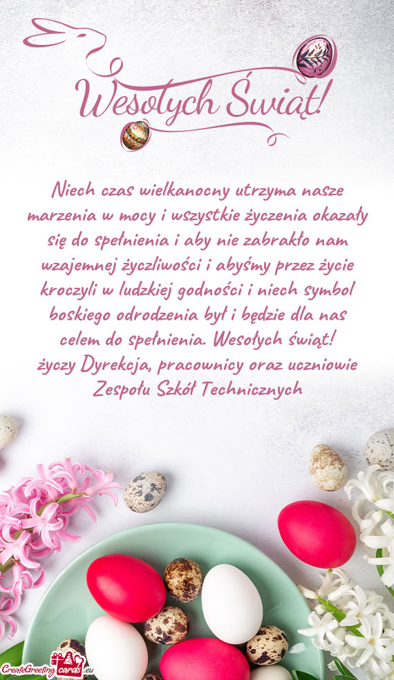 Obfitych łask i błogosławieństw, od Chrystusa Zmartwychwstałego oraz pełnych pokoju Świąt Wielkanocnych, z radosnym Alleluja życzą