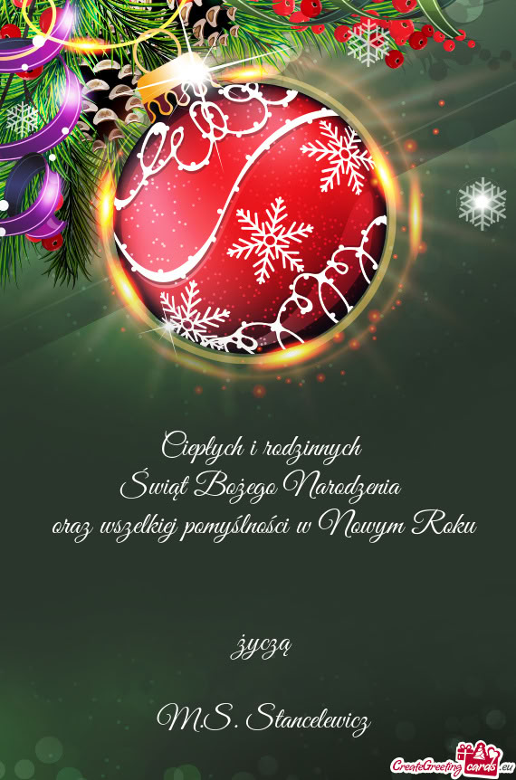 Najserdeczniejsze życzenia cudownych Świąt Bożego Narodzenia, pełnych rodzinnego ciepła i radości. Świąt dających radość i odpoczynek, oraz nadzieję na Nowy Rok!