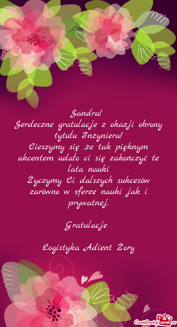 Niech marzenia się spełniają i sił Tobie dodawają.