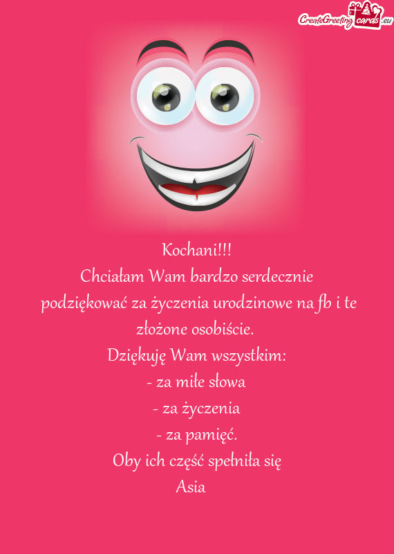 Serdeczne podziękowanie za życzenia urodzinowe, te osobiste, SmS, Fb.