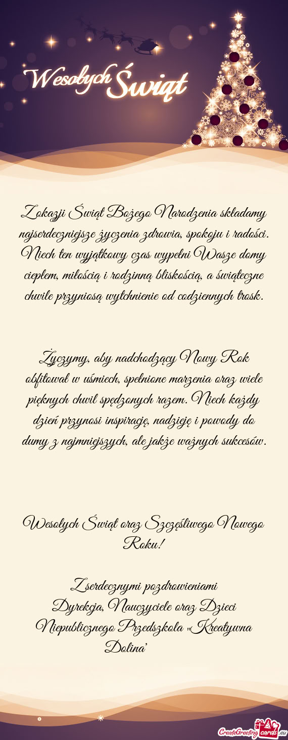 Spokojnych Świąt Bożego Narodzenia, spędzonych z bliskimi, w ciepłej, rodzinnej atmosferze oraz samych szczęśliwych dni w nadchodzącym