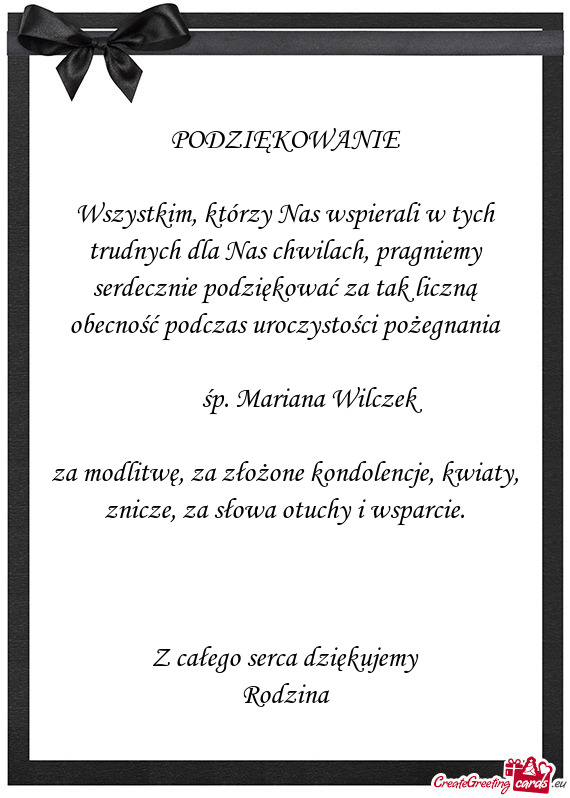 Wszystkim, którzy wsparli nas słowami otuchy, nadesłali kondolencje oraz uczestniczyli w uroczystościach pogrzebowych