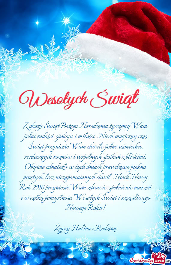Zdrowych spokojnych i pełnych rodzinnego ciepła świąt Narodzenia Pańskiego. Odpoczynku od codziennego zabiegania oraz chwili zadumy. Wszelkiej pomyślności w Nowym Roku oraz spełnienia w życiu osobistym i zawodowym życzy Michał, Agnieszka i Nikodem Słowik