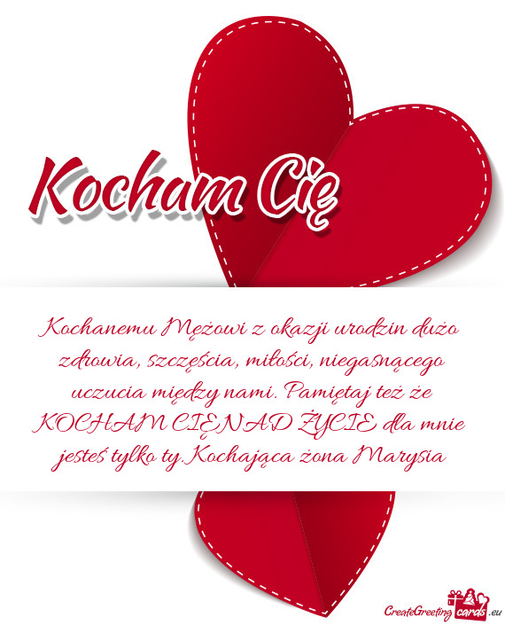 Kochany Mężu, z okazji urodzin życzę Ci znalezienia takiej pracy, takich przyjaciół i takich możliwości, o jakich marzysz. Stawiaj czoła przyszłości z nadzieją i odwagą, z entuzjazmem, zapałem i radością. Weź to wszystko w swoje ręce i zbuduj z tego życie, które warto przeżyć.