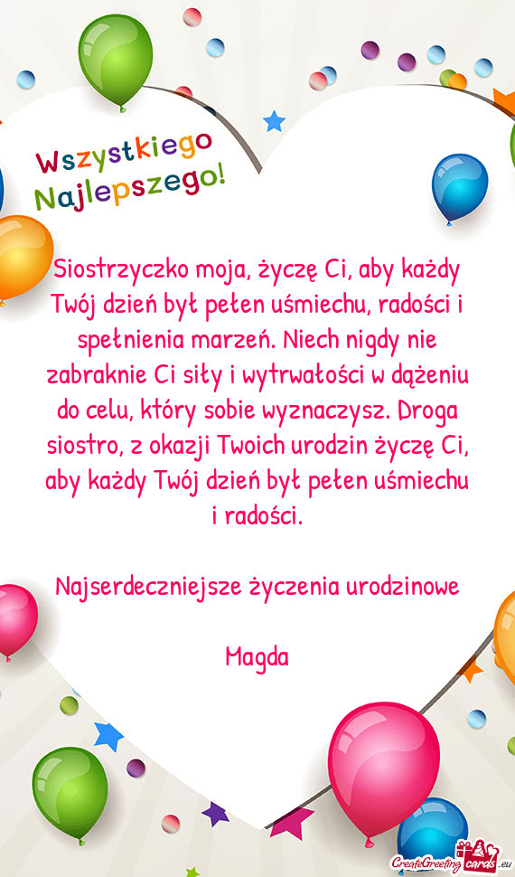 aby każdy nowy dzień był kolejnym powodem do zadowolenia, by nigdy nie opuszczała Cię dobra passa,a każde nowe wyzwanie było niezapomnianą przygodą :)