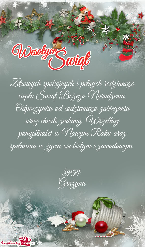 Świąt Bożego Narodzenia wypełnionych atmosferą ciepła, radości i życzliwości oraz Nowego Roku obfitującego w zdrowie, szczęście i pomyślność życzy Marina Chojnacka z Rodziną