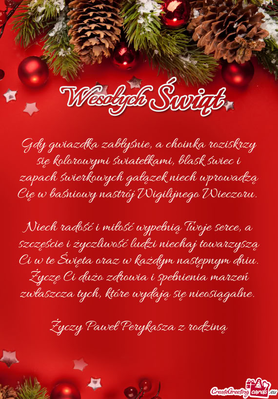 Szczęśliwych, spokojnych i radosnych Świąt Bożego Narodzenia oraz wszelkiej pomyślności i sukcesów w nadchodzącym roku.