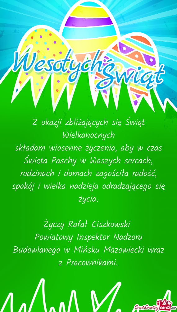 Zdrowia, wiary i nadziei, aby te Swieta Wielkanocne daly nam wszystkim sily i byly poczatkiem powrotu do normalnosci.