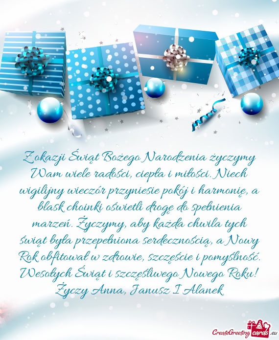 W te wyjątkowe dni życzę Ci, aby Święta Bożego Narodzenia były pełne
