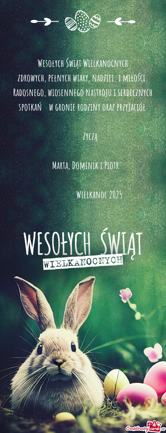 ZDROWYCH SPOKOJNYCH ŚWIĄT WIELKANOCNYCH.