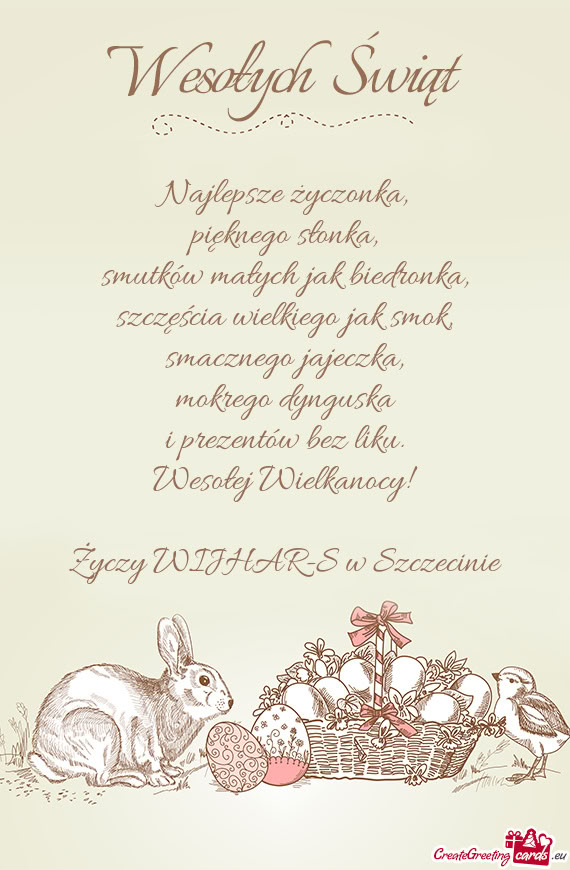 życzy jajeczek kolorowych i kurczaków odjazdowych,
