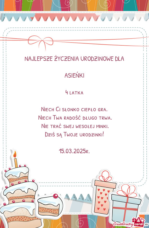 Dużo zdrówka, pomyślności i spełnienia wszystkich marzeń. Sukcesów w życiu prywatnym i zawodowym życzy Kasia