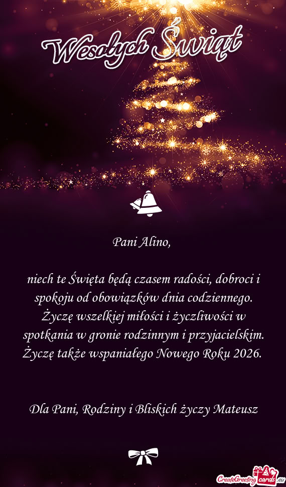 Bóg się rodzi, moc truchleje. Niech Pan prowadzi Was, nawet przez najgorszą zawieje. Niech obdarzŻyczą Angelika i Piotr MotaccyDości Świąt Bożego Narodzenia, a także wielu sukcesów w nadchodzącym 2018 rokuMamy najbliżej. Abyśmy doświadczyli radość płynącą z prostych, ale pięknych chwil spędzonyDagusia