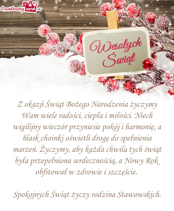 Z okazji Świąt Bożego Narodzenia życzymy pokoju Chrystusowego, zdrowia