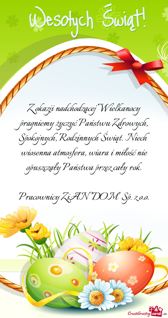 Z okazji Świąt Wielkanocnych składam Państwu najserdeczniejsze życzenia: dużo zdrowia, rado
