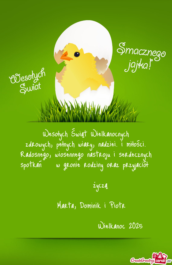 Z okazji Wielkanocy składamy najserdeczniejsze życzenia: dużo zdrowia, szczęścia i radości, a niech wiosennego optymizmu dodadzą smaczne jajko oraz mokry śmigus-dyngus