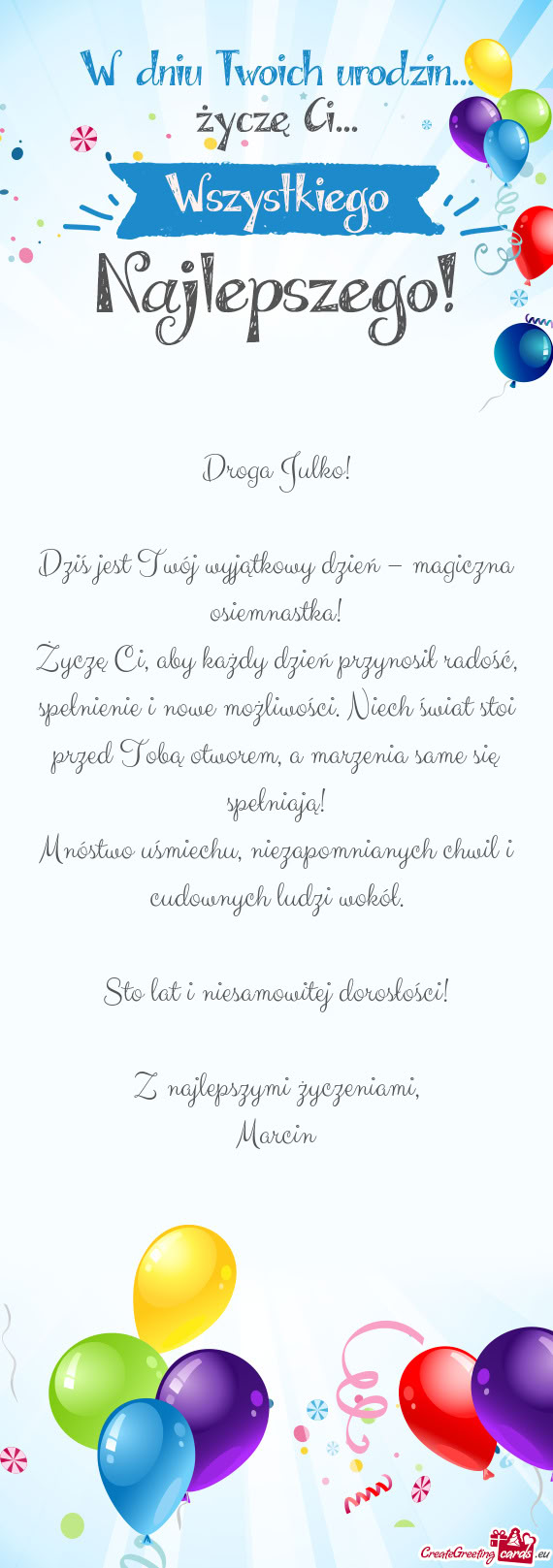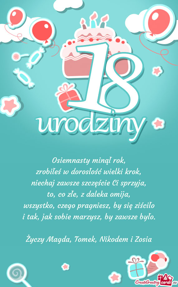 Kartki na 18 urodziny