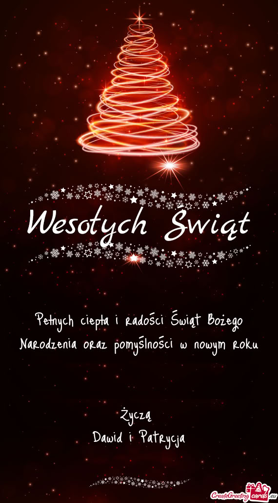 Aby ten wyjątkowy czas upłynął w atmosferze radościRodzinnych pełnych radości i miłości świąt dla Was i Waszych bliskichZymi, wszelkiej pomyślności oraz spełnienia się w życiu zawodowym i osobistym w nadchodzącym 2StukaDozórŻyczą Sandra i Tomasz Duda