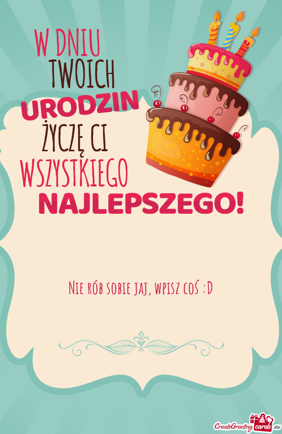 ADBLOCK spowodował błąd generowania kartki. Proszę wyłączyć program blokujący reklamy i odświeżyć stronę. Dzięki reklamom można tworzyć kartki za darmo. Dziękujemy.