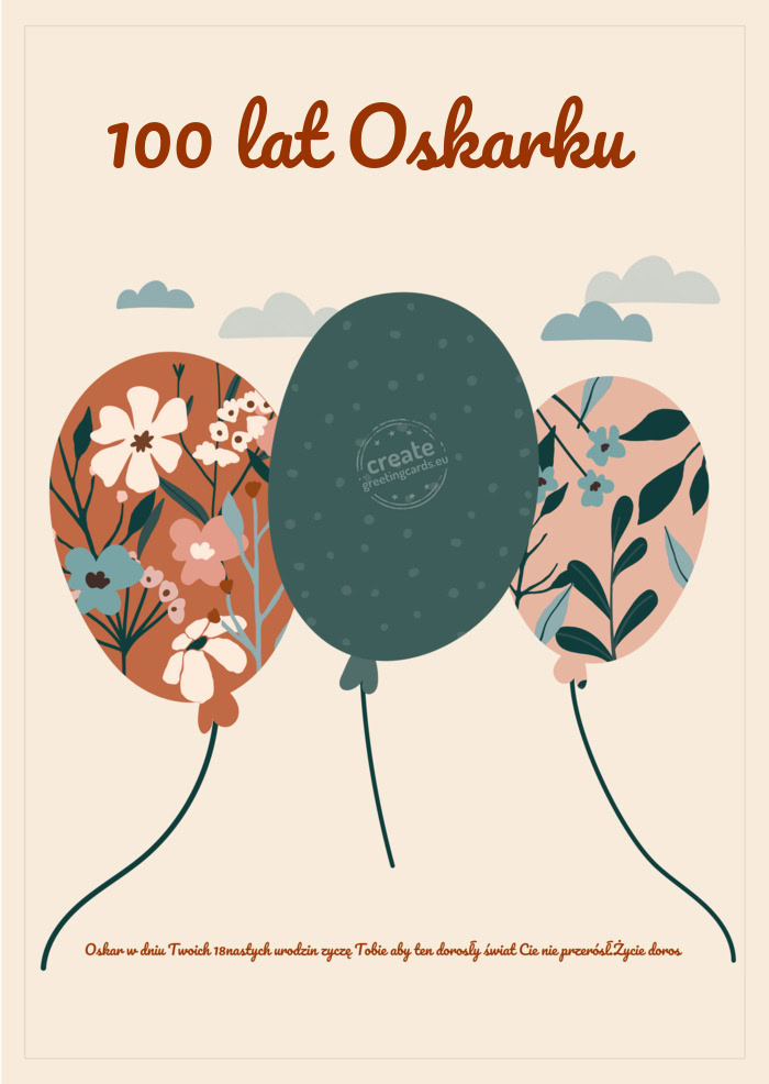 Wszystkiego najlepszego z okazji imienin Życzą: Magda, Szymon, Jowita i DariaŻyczą Chrzestna z rodzinąTwoje Kiedy patrzę na Ciebie, widzę osobę, która już teraz ma w sobie ogromną siłę i piękWszystkiego najlepszego Sto lat100 lat Oskarku❤ Oskar w dniu Twoich 18nastych urodzin zyczę Tobie aby ten dorosły świat Cie niWesołych i pełnych radości lat, odwagi do realizacji marzeń, spełnienia celów i niezapomnianyc